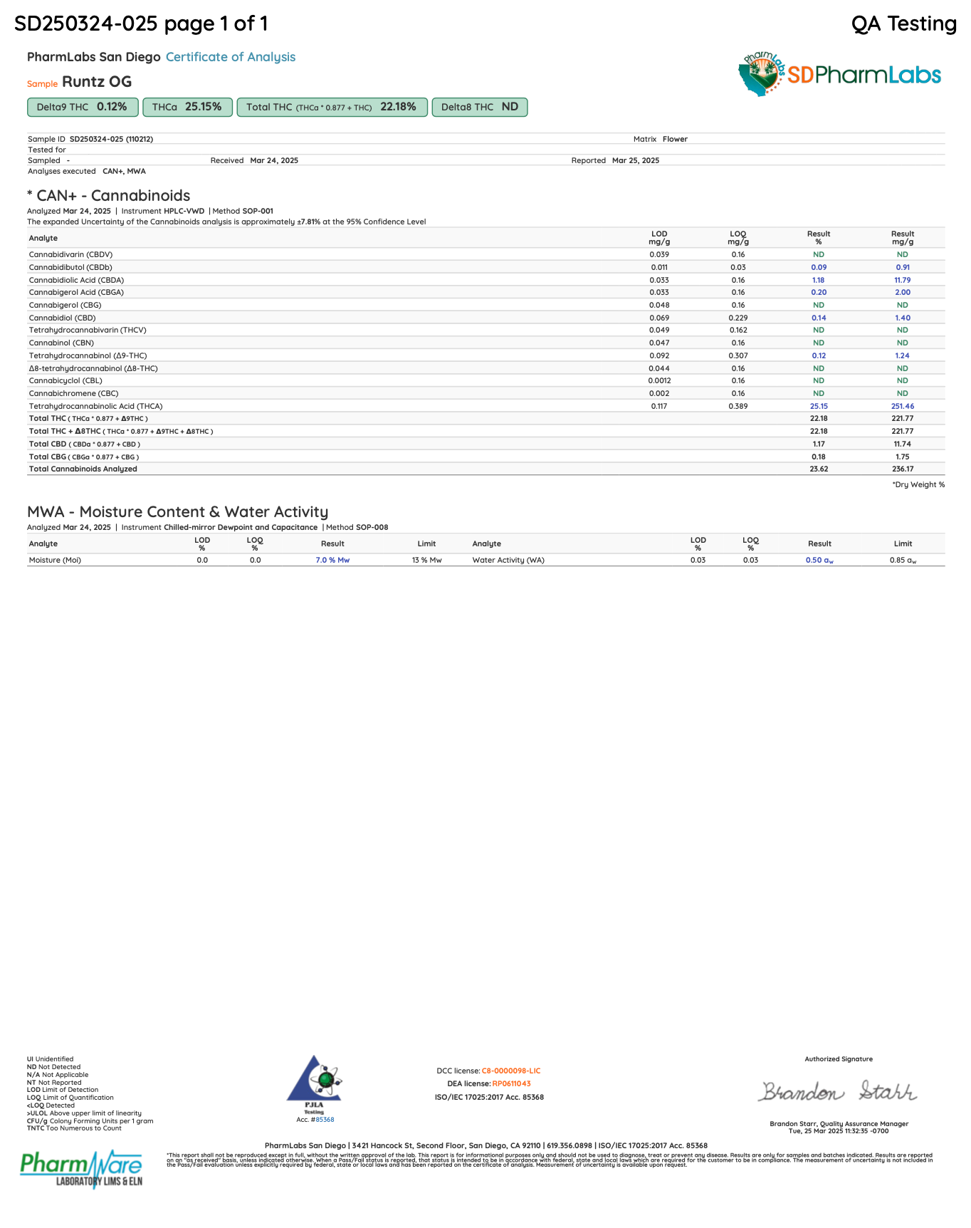 Runtz OG Small Buds Premium Indoor THCA Flower Flavor Chart